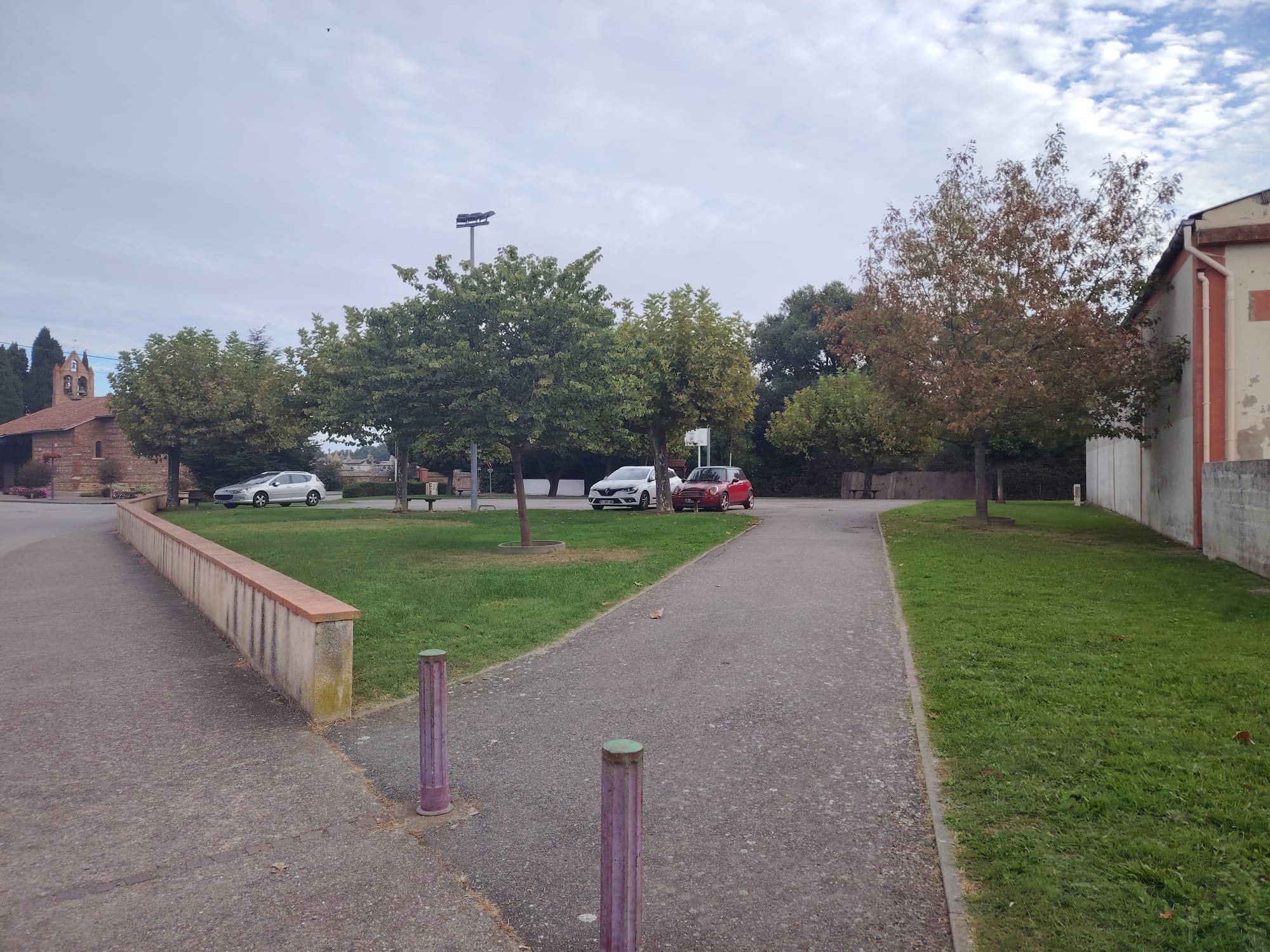 Deuxième parking disponible pour les cérémonies église/mairie. Un panier de basket se trouve sur ce parking. L'entrée est au niveau de la voiture à gauche, il faut tourner à droite juste avant l'église.